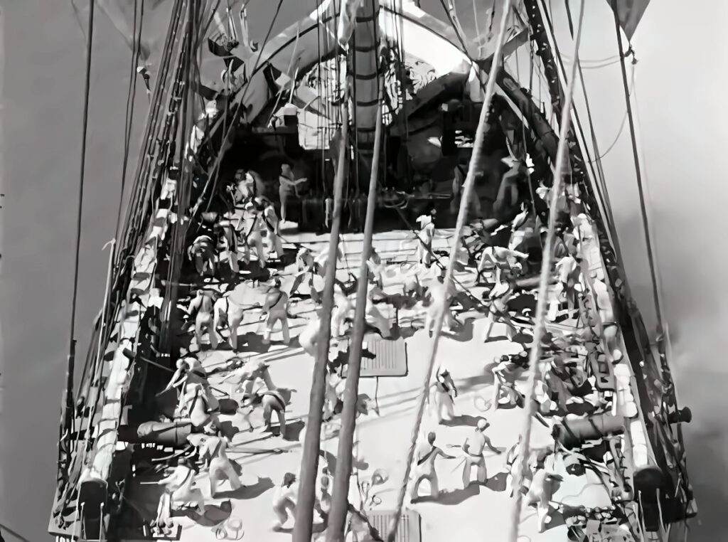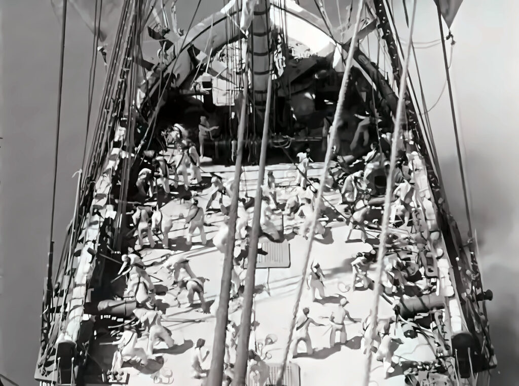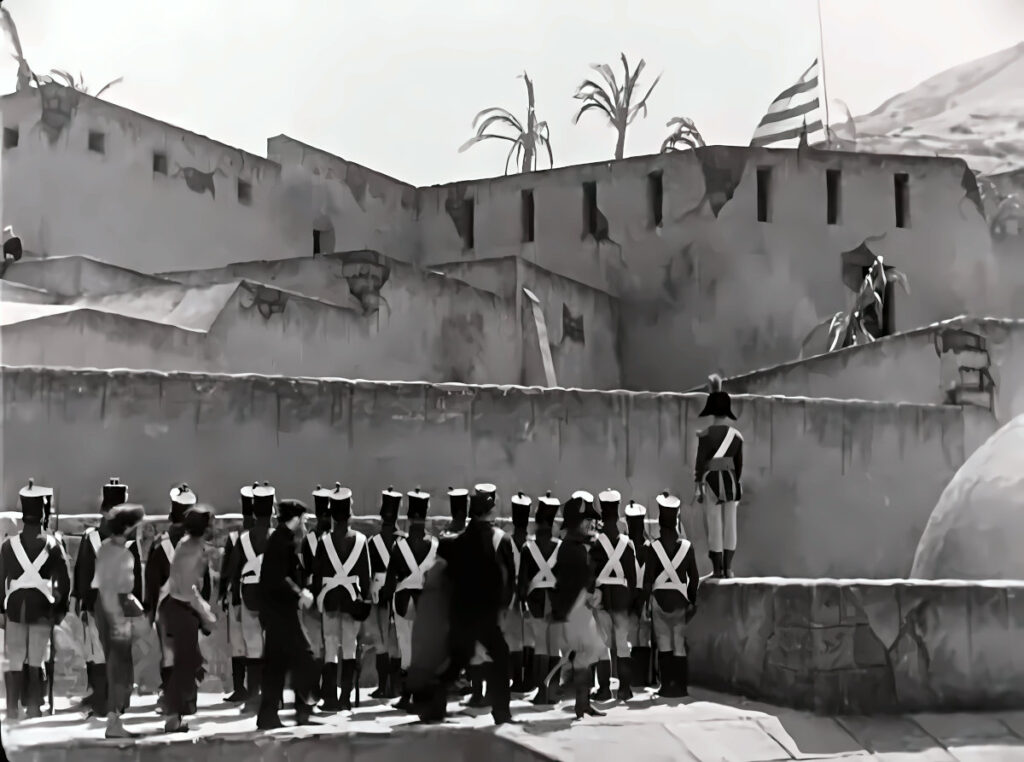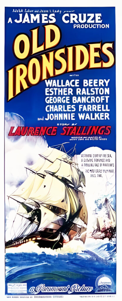 Used to raise money for the restoration of the U. S. S. Constitution, Old Ironsides is the swashbuckling adventure story about the victory of the infant American marines against the Tripoltanian pirates. Starring a salty Walter Beery, the battle sequences were (and are) the occasion for numerous sound effects and a doubling of the size of the visual image. These battles gave rise to the line “From the shores of Monteczuma to the shores of Tripoli” in the Marine hymn. This picture is perfect for a patriotic holiday.
