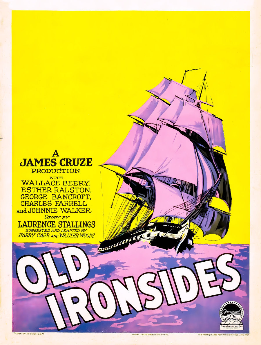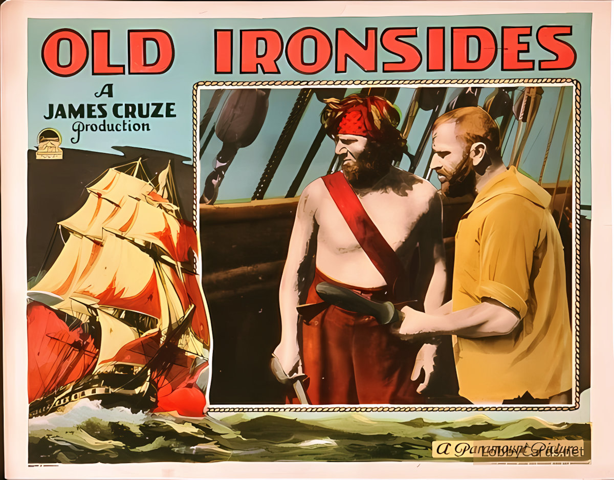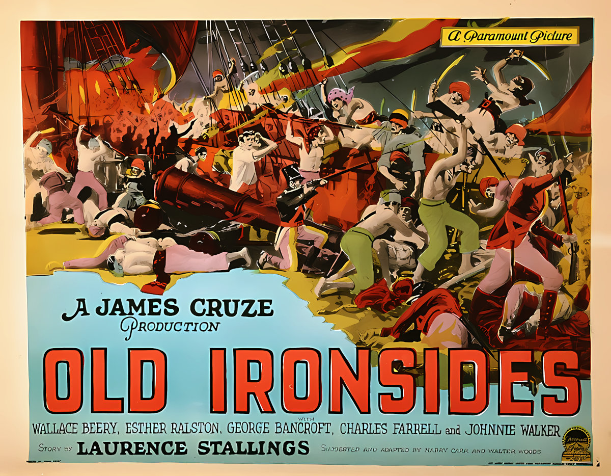 Used to raise money for the restoration of the U. S. S. Constitution, Old Ironsides is the swashbuckling adventure story about the victory of the infant American marines against the Tripoltanian pirates. Starring a salty Walter Beery, the battle sequences were (and are) the occasion for numerous sound effects and a doubling of the size of the visual image. These battles gave rise to the line “From the shores of Monteczuma to the shores of Tripoli” in the Marine hymn. This picture is perfect for a patriotic holiday.