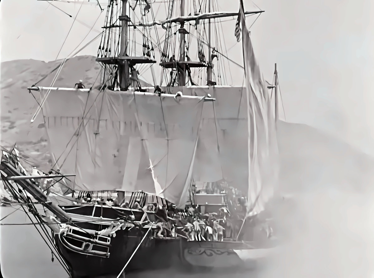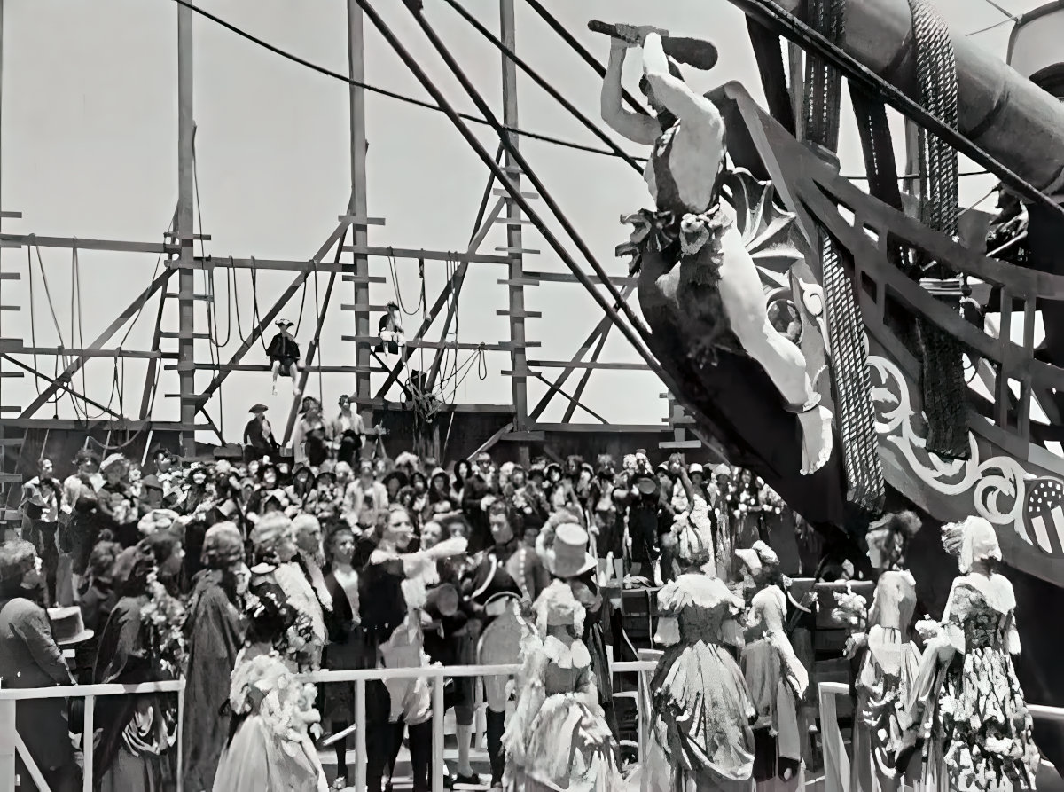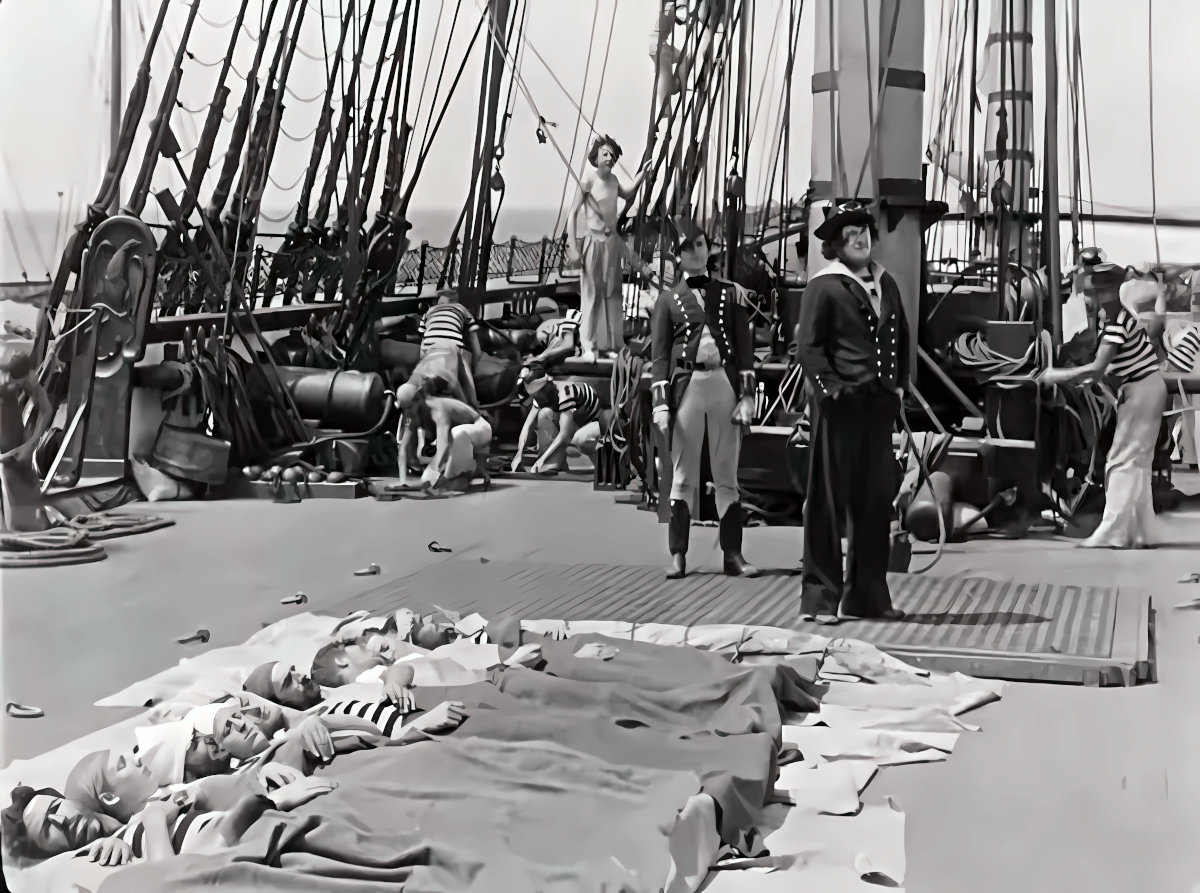 Used to raise money for the restoration of the U. S. S. Constitution, Old Ironsides is the swashbuckling adventure story about the victory of the infant American marines against the Tripoltanian pirates. Starring a salty Walter Beery, the battle sequences were (and are) the occasion for numerous sound effects and a doubling of the size of the visual image. These battles gave rise to the line “From the shores of Monteczuma to the shores of Tripoli” in the Marine hymn. This picture is perfect for a patriotic holiday.